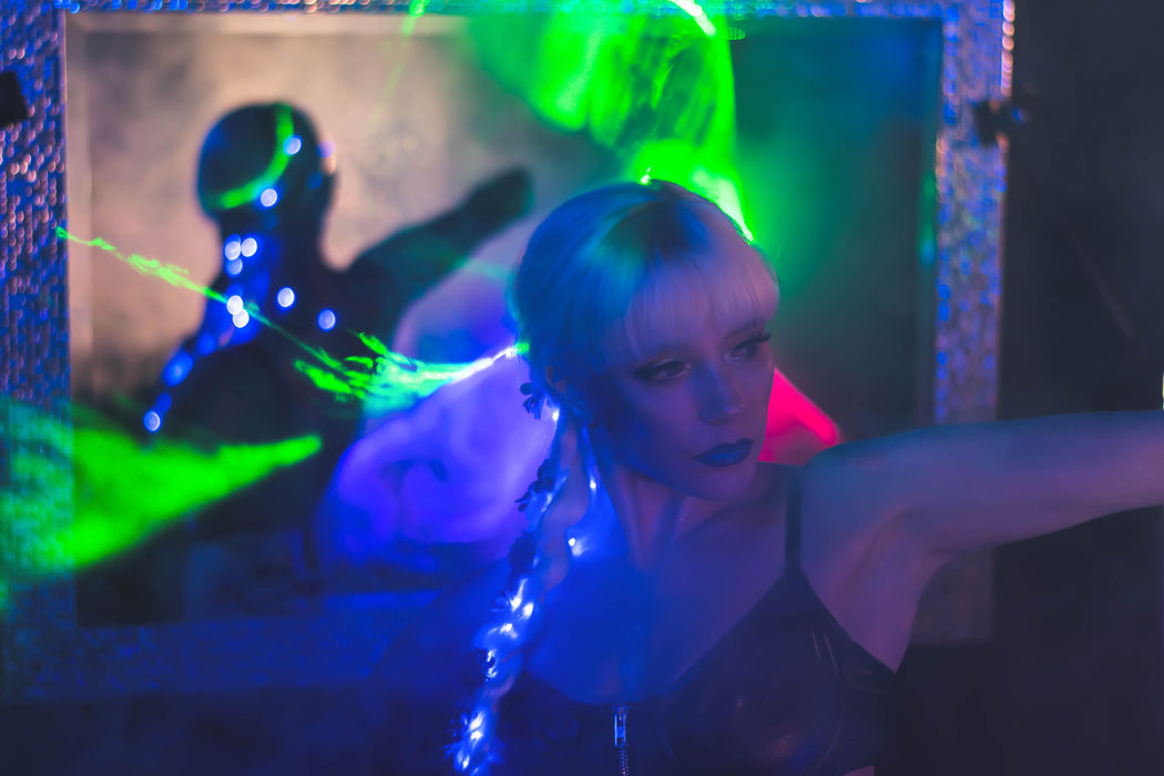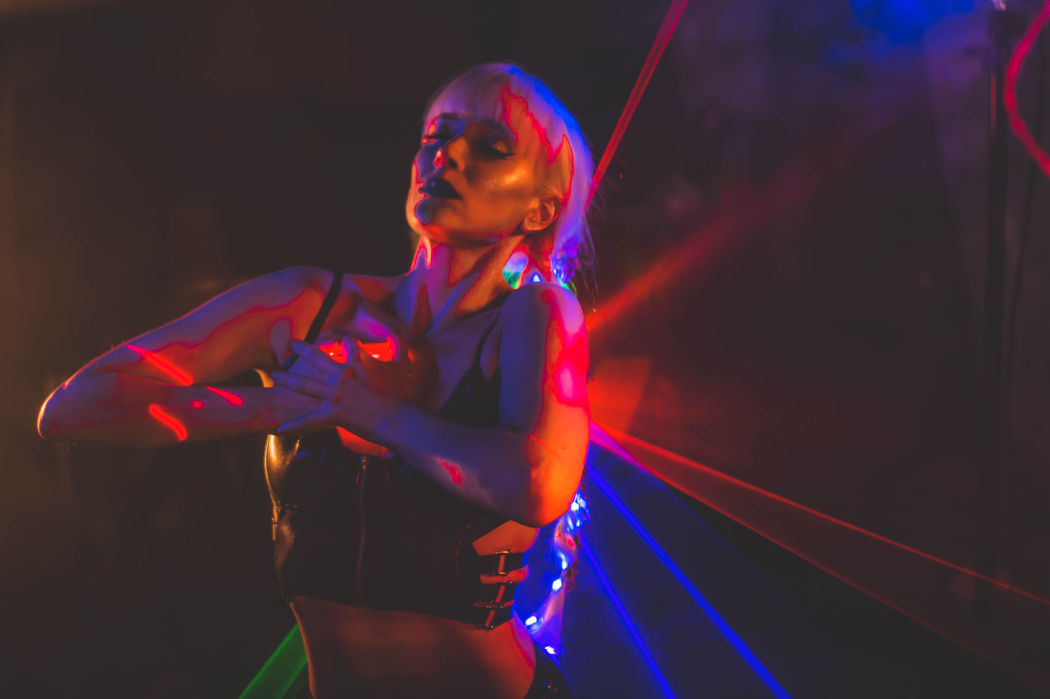 Contemporary dancer Spencer Pilling pours her heart out as she dances in front of beautiful lights.